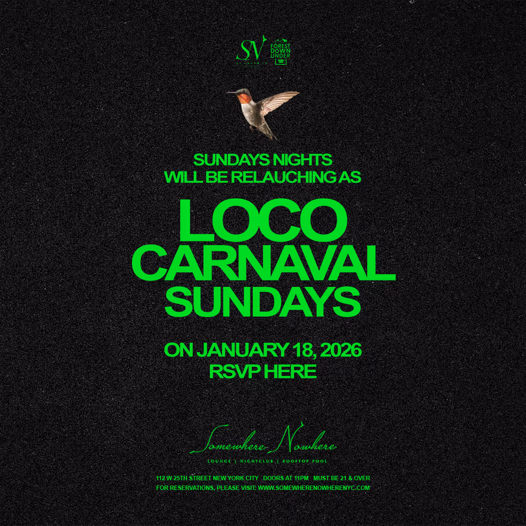 On Sunday, January 4th, Somewhere Nowhere presents Loco Carnaval Sundays.