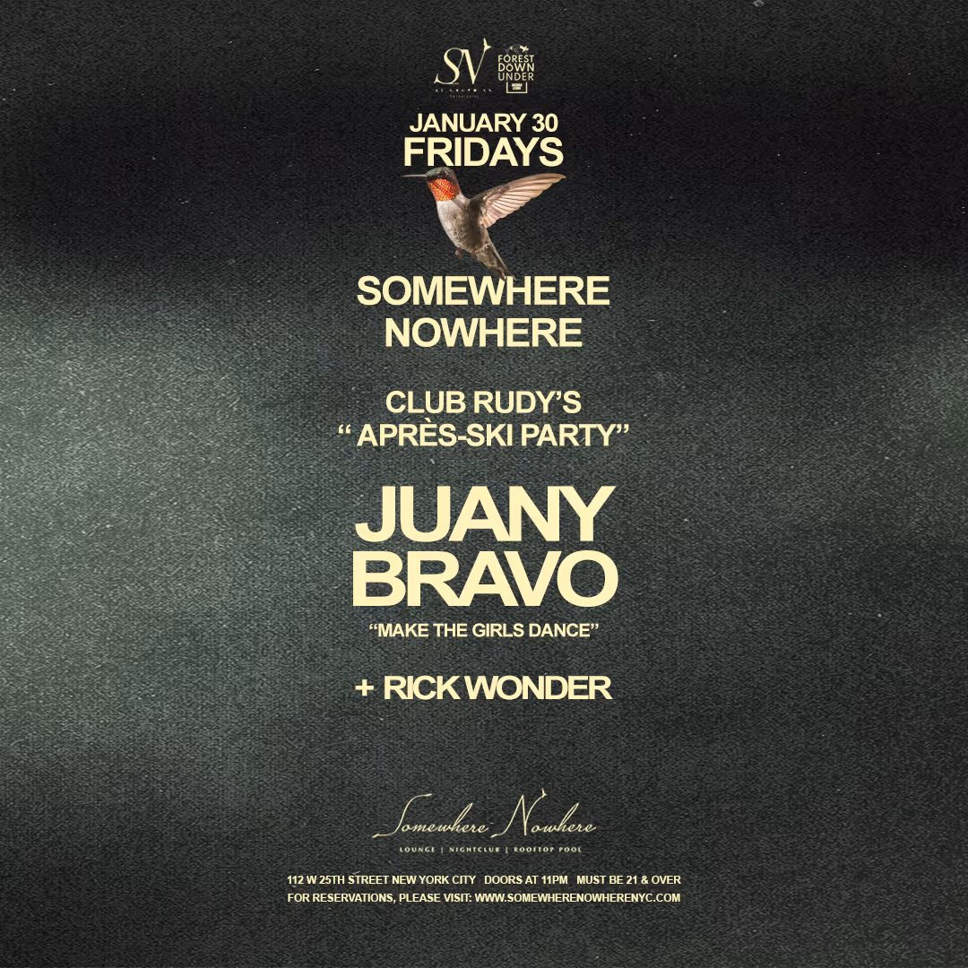 On Friday, January 30th, Somewhere Nowhere NYC presents Juany Bravo [Make The Girls Dance] w/ Rick Wonder :: Après-ski Edition