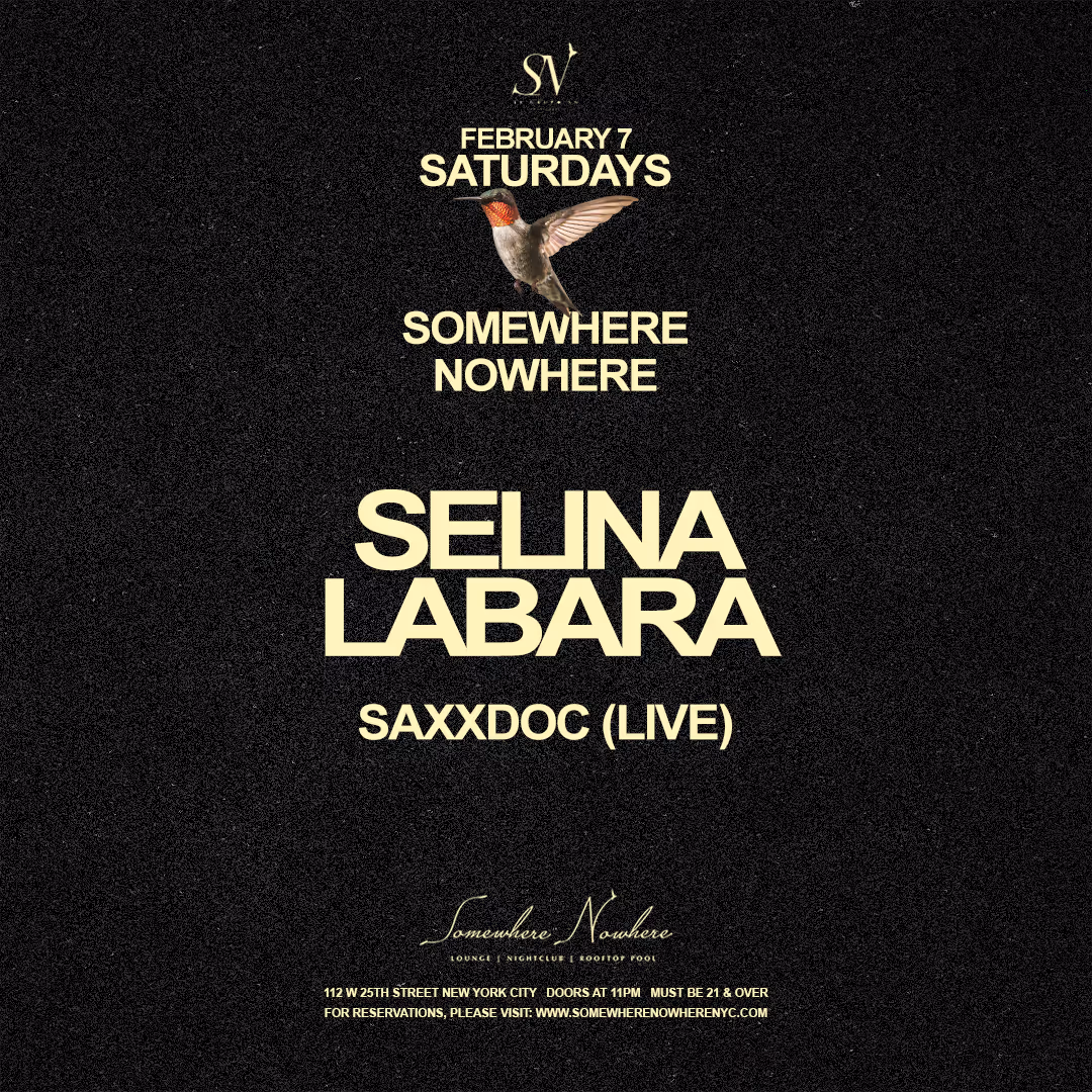 On Saturday, February 7th, Somewhere Nowhere NYC presents music by Selina Labara w/ Saxxdoc (Live).