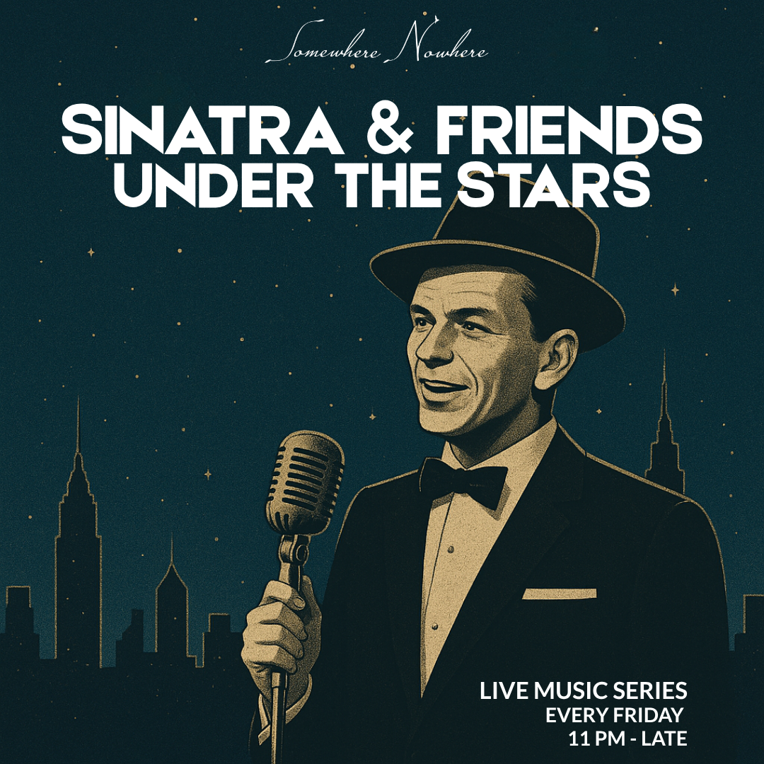 Join us every Friday from 11 PM to close for Sinatra Under the Stars — a captivating live performance high above Manhattan at the enclosed rooftop of Somewhere Nowhere NYC (39th floor).