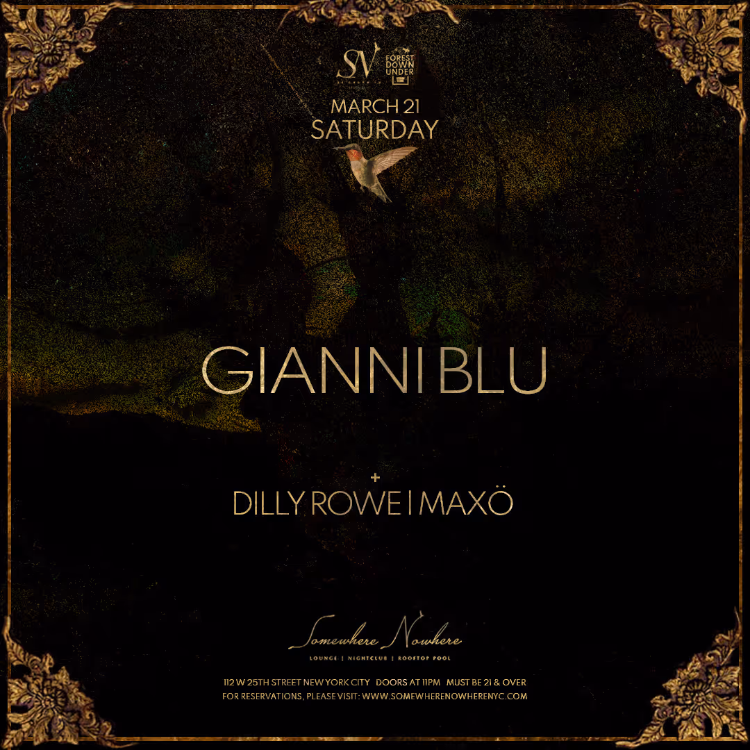 On Saturday, March 21st, Somewhere Nowhere NYC presents music by Gianni Blu Wit Dilly Rowe and Maxö