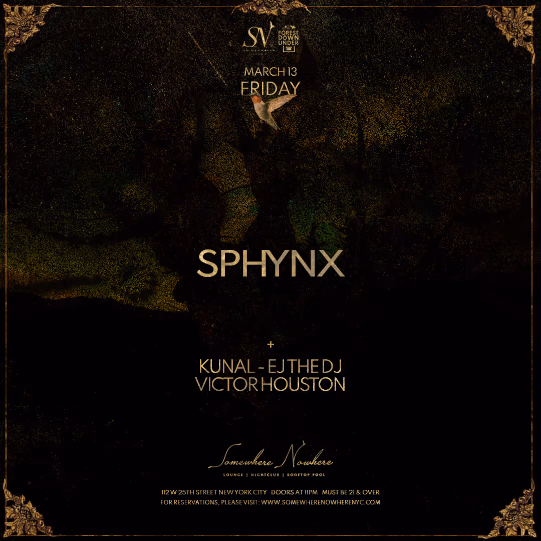 On Friday, March 13th, Somewhere Nowhere NYC presents music by SPHYNX, kunal, EJ The DJ and Victor Houston