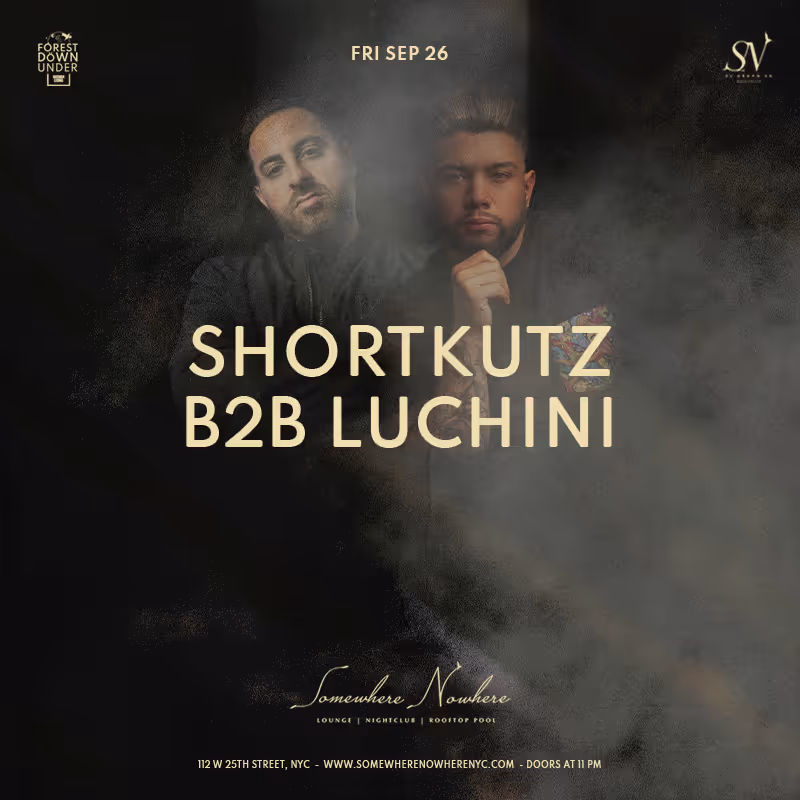 On Friday, September 26th, Forest Döwn Under presents Shortkutz b2b Luchini [Afro House Set] at Somewhere Nowhere NYC.