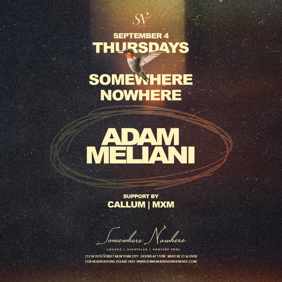 On Thursday, September 4th, Somewhere Nowhere NYC presents Where Else Thursdays with Music by Meliani w/ Callum and MXM.